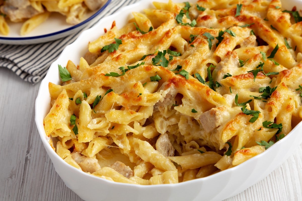 This baked pasta dish delivers all the creamy, cheesy goodness you crave on a cold evening. With tender chicken and golden cheese on top, it’s comfort in a casserole dish. Among the most satisfying winter meals, this one never fails to please.